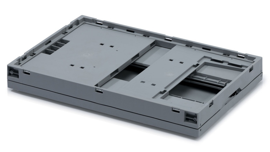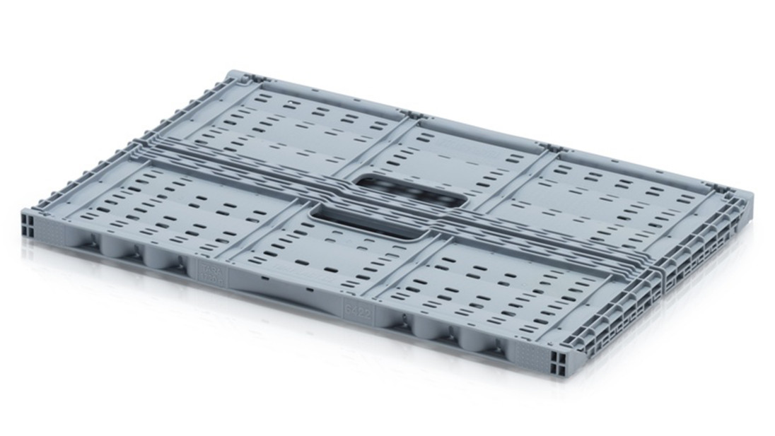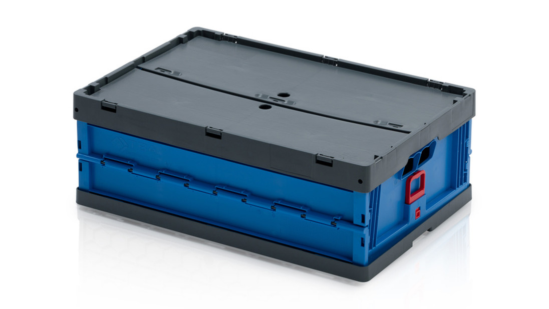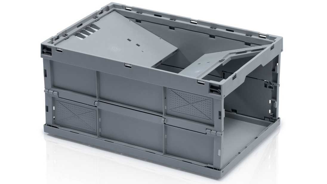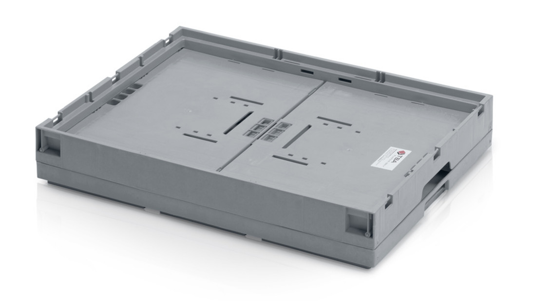 Складні євроконтейнери доповнені кришкою, що не впливає на можливість штабелювання. Кришка представлена двома складними половинками. Така система зводить нанівець втрату кришки, що може призводити до некомплектності, але водночас не ускладнює наповнення контейнера товаром чи вилучення його.