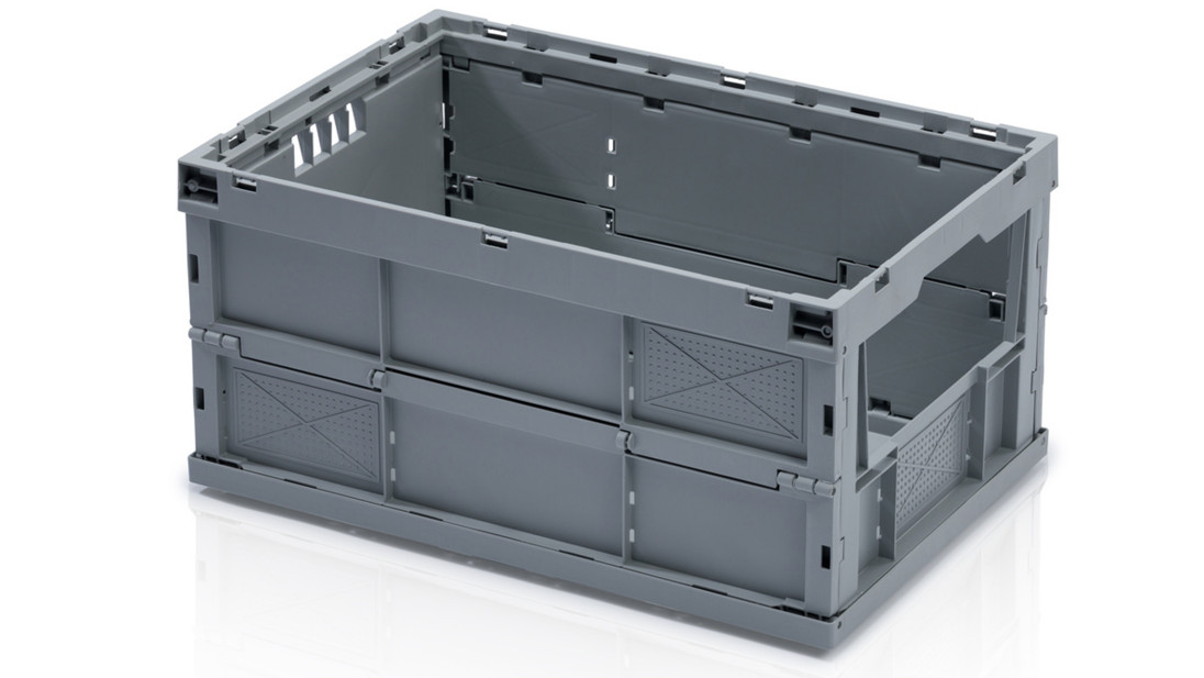 Стінки та дно посилені. Завдяки рухомим бічним стінкам такі контейнери можна складати, що суттєво знижує витрати на транспортування тари. Їх можна штабелювати як у складеному, так і розкладеному заповненому вигляді. Це не призводить до погіршення їх експлуатаційних властивостей.