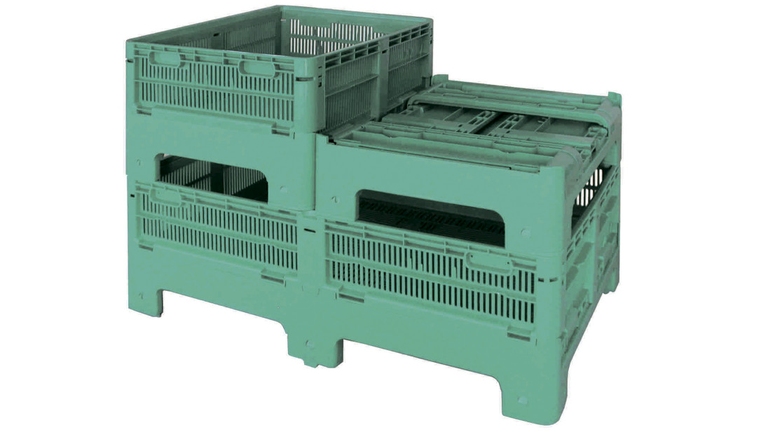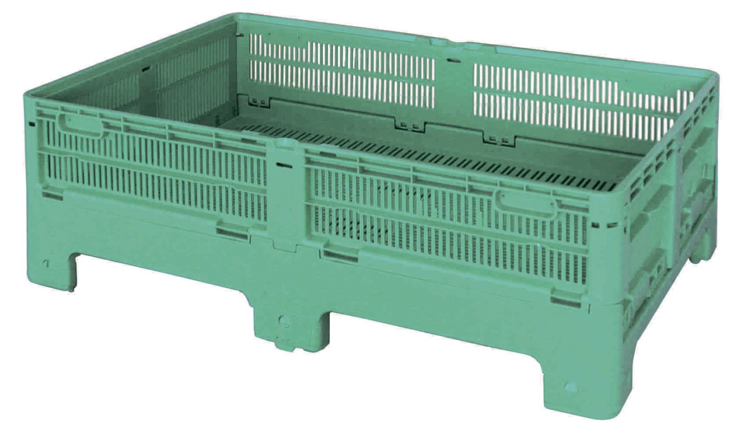 Складані контейнери, об'ємів 110 і 225 л, представлені найбільш поширеними європейськими розмірами 800х600 мм та 1200х800 мм відповідно. Ідеальні для перевезення на європалетах. Завдяки конструктивним особливостям їх можна ставити один на одного не пошкоджуючи товари всередині. Внутрішня висота ніжок 97 мм із загальною висотою контейнерів 395 мм. А це означає, що вони зручні для захоплення вилами рокли, навантажувача чи будь-якої іншої вантажної техніки.