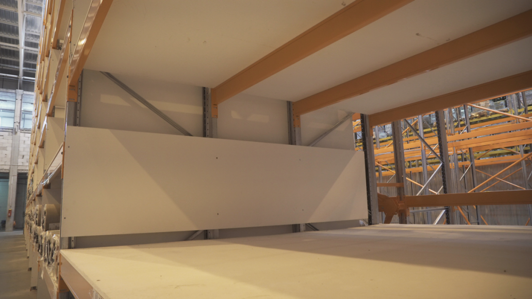 - Полиці – настил з ДСП для розміщення на них продукції в рулонах. Настил розміщується на траверсах та фіксуються за допомогою перегибів та перемичок.