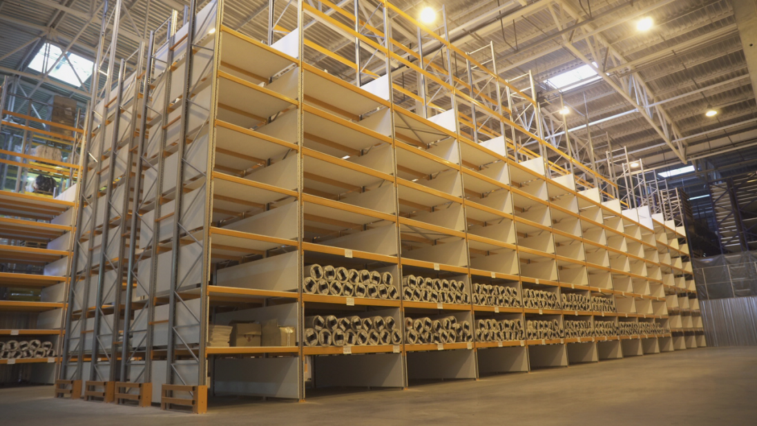 Стелажі для рулонів на базі палетних або стелажів Мега забезпечують оптимальне та зручне зберігання довгомірної продукції в рулонах. Суцільні полиці, на відміну від зберігання на консольних стелажах, гарантують захист продукції від провісів та заломів, пошкодження рулонів буде нівельовано. Оскільки спосіб обробки рулонів є поштучним, стелажі такого типу дозволяють мати доступ до конкретної позиції в певний момент часу.