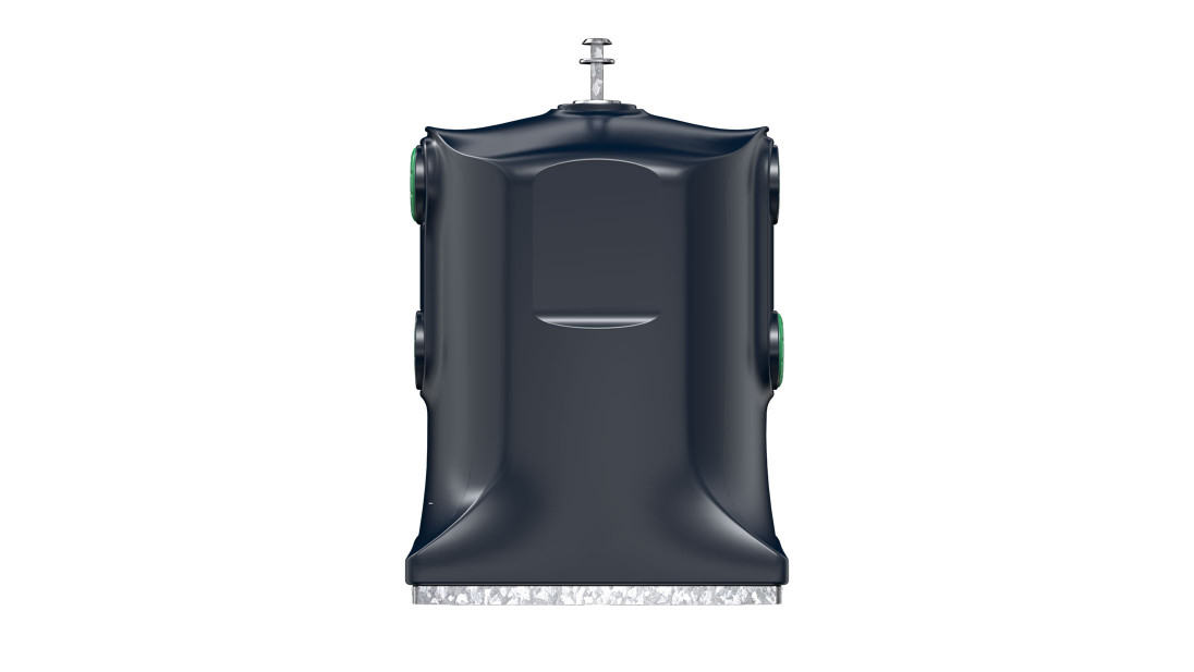Корпус виконаний з ротоформованого пластику та має мінімалістичний сучасний дизайн з закругленими кутами, що, в свою чергу, впливає не тільки на естетичність сприйняття, але й на зменшення простору розміщення (2,36 кв.м) та спрощення процесу очищення та миття. Корисний обсяг сміттєвого баку складає 2,75 куб. метрів при максимальній вазі - 1755 кг (порожній – 180 кг). Усередині контейнера передбачений індикатор рівня заповнення корисного обсягу.