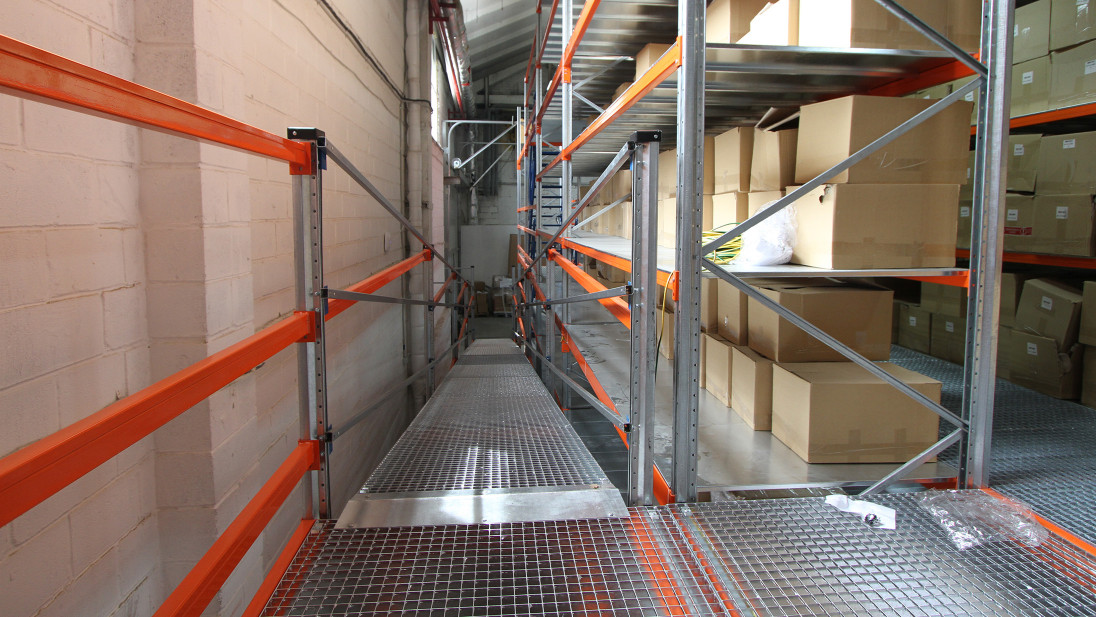 З-за інтенсивної обробки замовлень на складі стояло завдання організувати доступ на 2-й і 3-й поверх мезоніну складських працівників з візками, для комплектації замовлень, що надходять. Тому, крім стандартних сходів, для переміщення робочого персоналу між поверхами також розроблено і впроваджено так званий пандус (або іншими словами рампа). Це похилий майданчик з рівною поверхнею, що з'єднує між собою поверхи мезоніну. Пандус дозволив персоналу з візками набагато швидше комплектувати замовлення, переміщуючи товар між поверхами мезоніну без застосування вантажної техніки та інших допоміжних механізмів.
