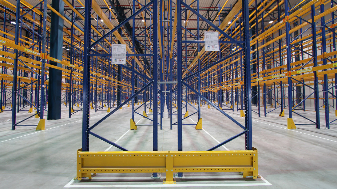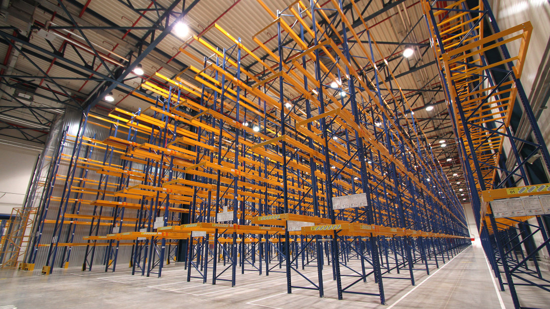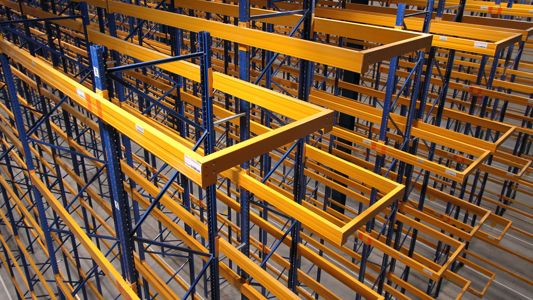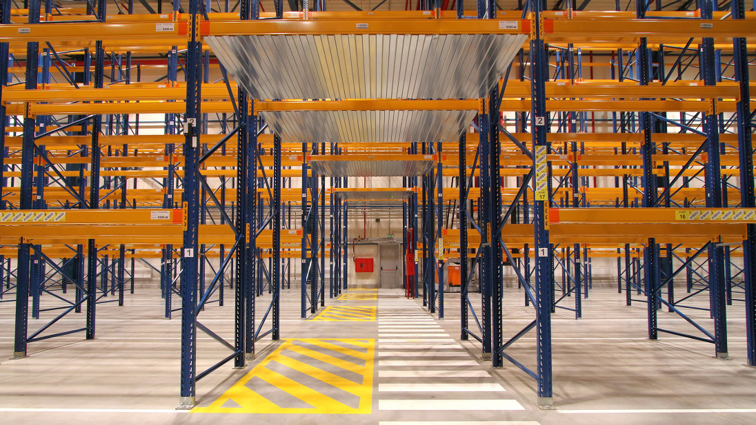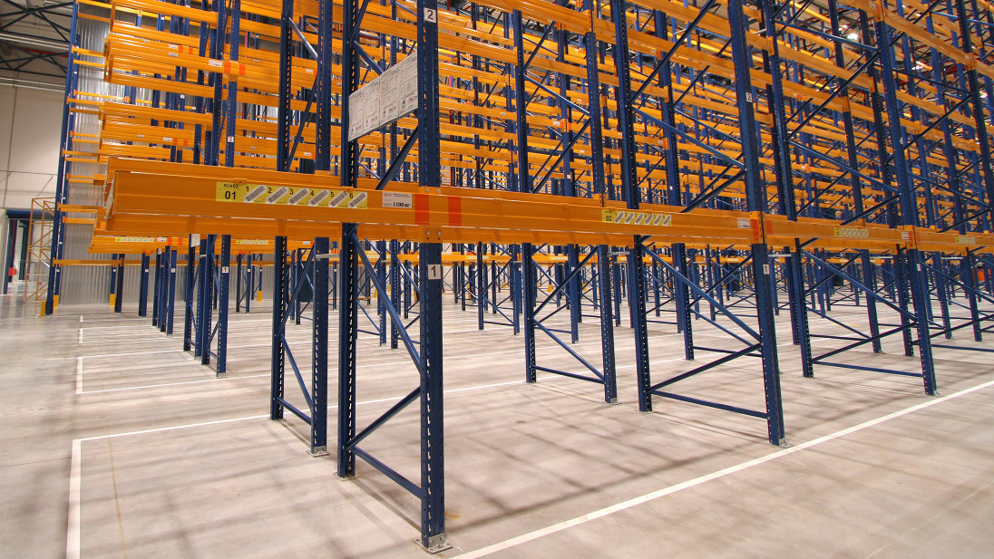 Для розміщення різних груп товарів у межах одного стелажного ряду передбачено до 7 видів ярусності та несучої здатності траверс (помаранчеві балки). Таким чином була досягнута максимальна ефективність використання висоти приміщення.