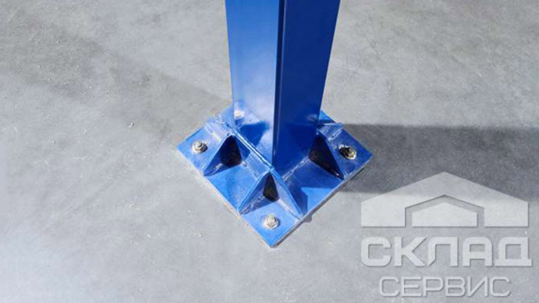 Широка підошва (п'ятка) надійно кріпиться до підлоги анкерними болтами і дозволяє рівномірно розподіляти навантаження на підлогу приміщення. Всі розрахунки конструкції виконані згідно норм FEM 10.3.01 і10.2.03.