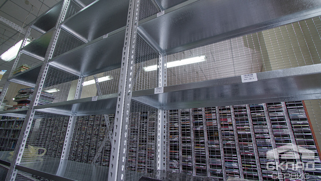 Відсутність планок для полиць збільшує міжполичний простір і підвищує загальну місткість стелажів. Полиці можуть бути як оцинкованими, так і покриті порошковою фарбою.