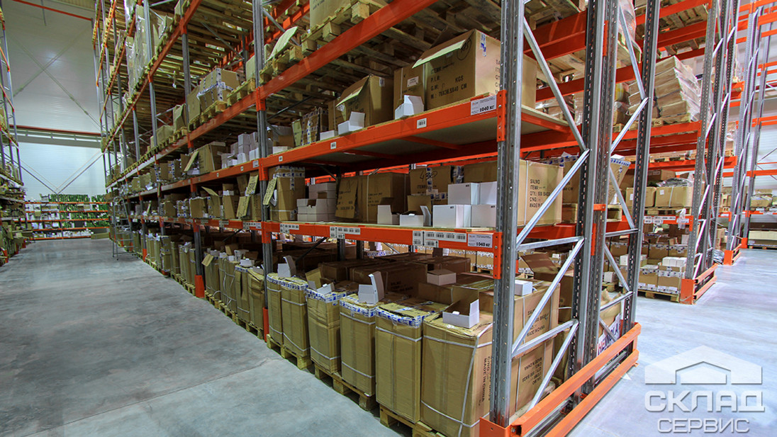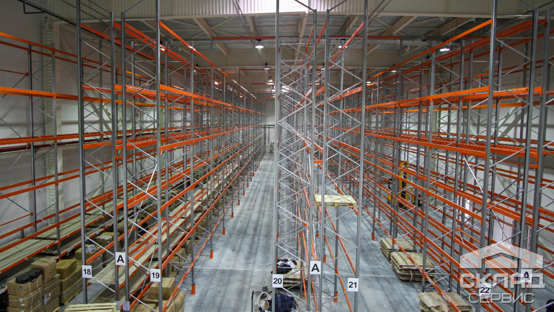 На складській площі приблизно в 1 500 м. кв нашим інженером була розроблена оптимальна схема розміщення стелажів: вийшло 3 подвійних і 2 одинарних ряду, з урахуванням проїздів для техніки і зони експедиції.