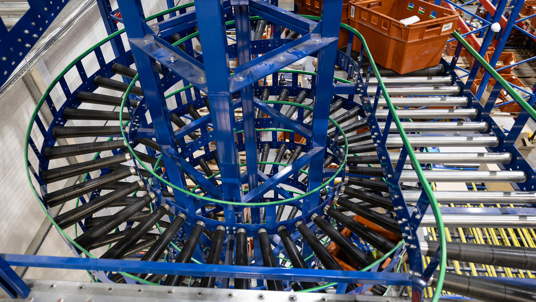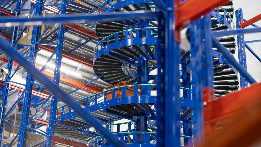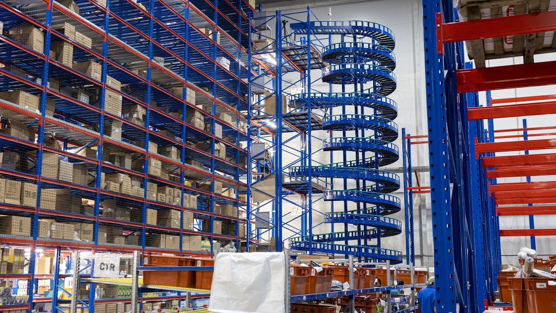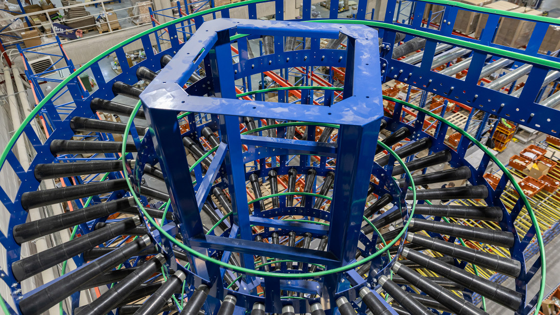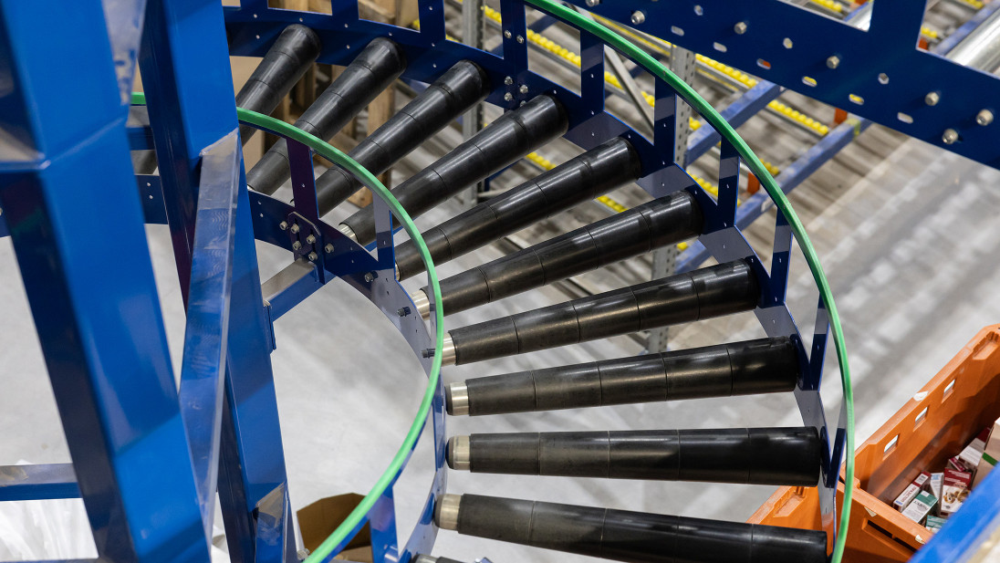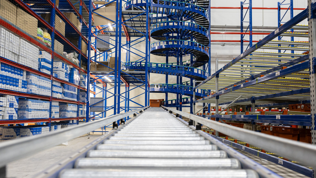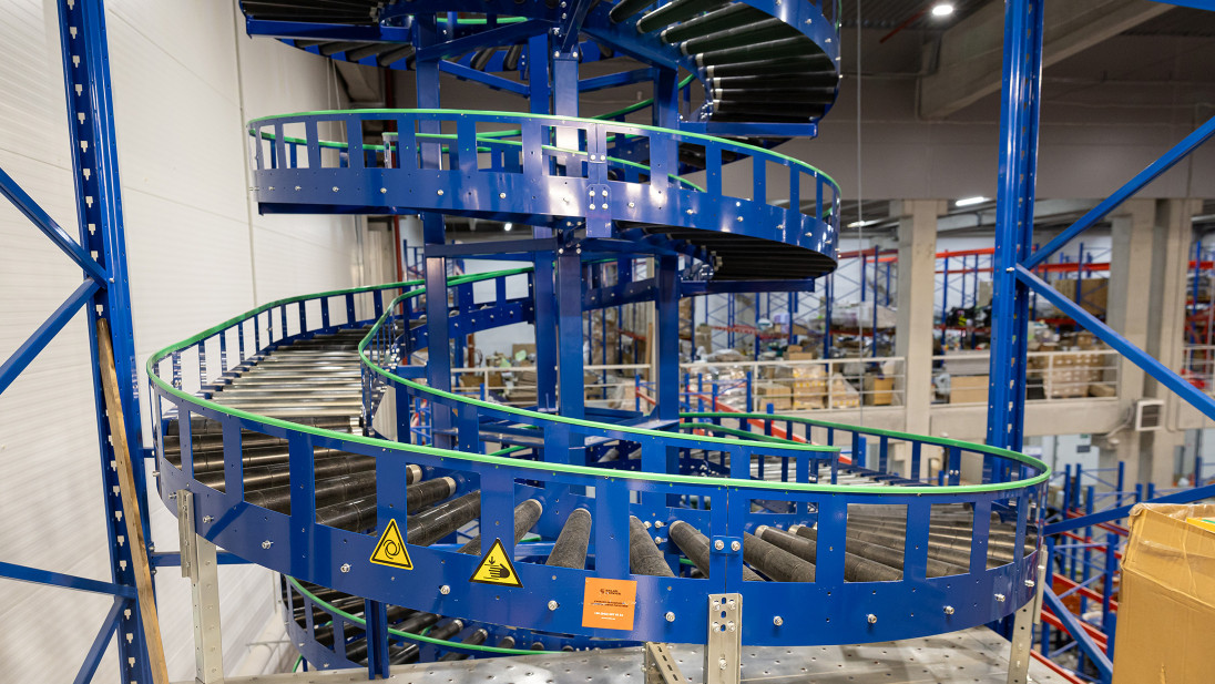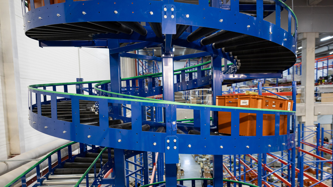 Покажемо це на прикладі компанії Сузір’я, для якої ми вже успішно запроваджували одне рішення – конвеєрну гірку. Другим рішення, що ми імплементували став потоковий спуск замовлень тарно-штучного товару з п’яти поверхів зберігання …завдяки спіральному конвеєру. Такі конвеєри є чудовою альтернативою ліфтам або конвеєрним гіркам.