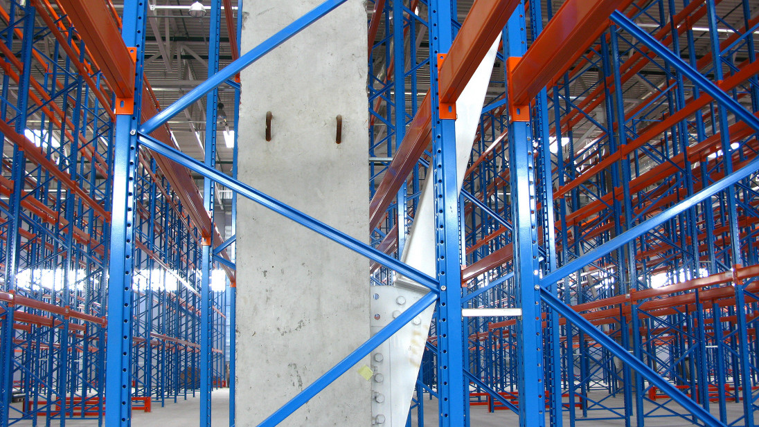 З-за збільшеного робочого коридору (до 3000 мм) в деяких місцях колони не вдалося "сховати" в стелажний ряд. Але в даному випадку колони надійно захищені елементами безпеки, які застосовуються і для стелажів.